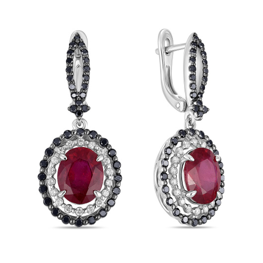 Серьги с бриллиантами и облагороженным рубином