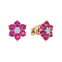 Серьги с рубином и фианитами