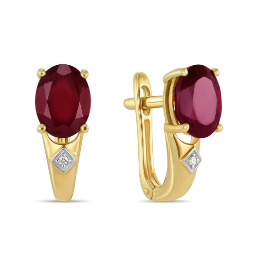 Серьги с бриллиантами и облагороженным рубином