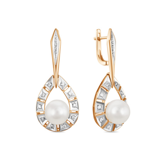 Серьги с бриллиантами, жемчугом и цветными сапфирами
