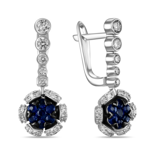 Серьги с бриллиантами и цветными сапфирами