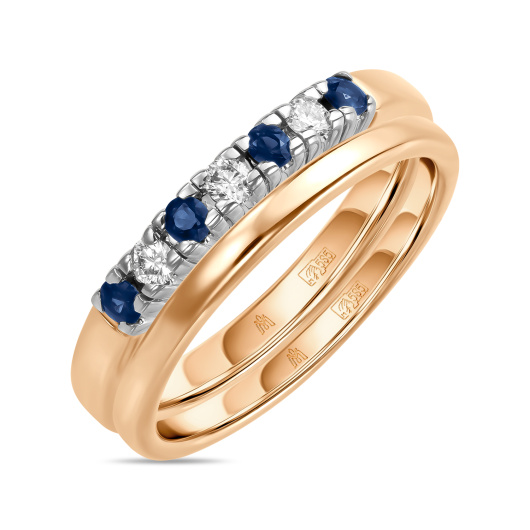 Кольцо с бриллиантами и сапфирами