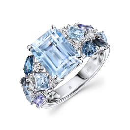 Кольцо с бриллиантами и морганитом