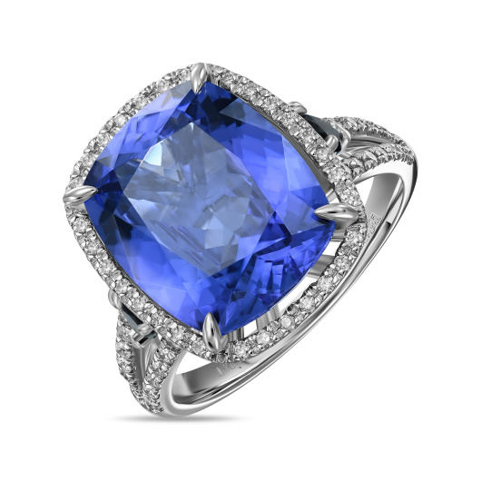 Кольцо с бриллиантами, танзанитом и сапфирами