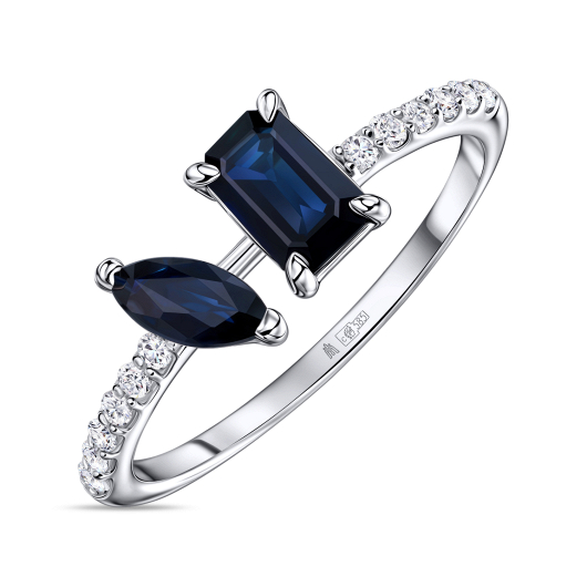 Кольцо с бриллиантами и сапфирами