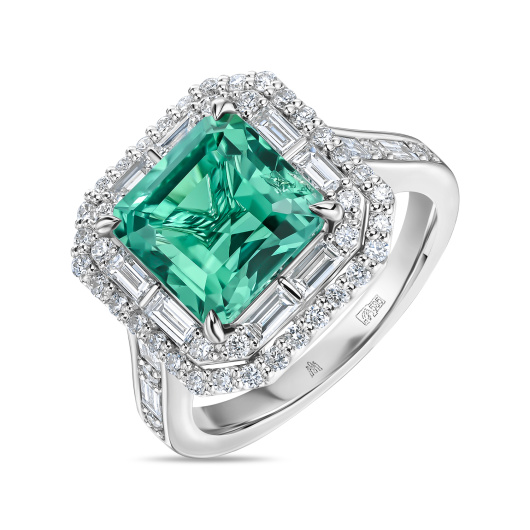Кольцо с бриллиантами и сапфиром