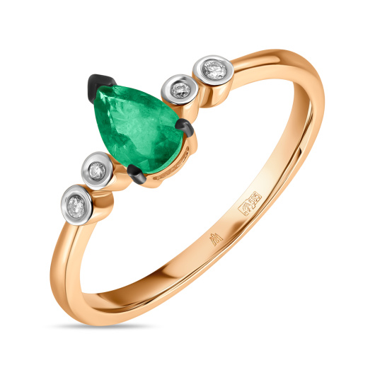 Кольцо с изумрудом и фианитом