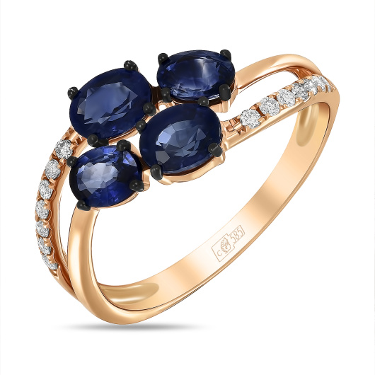 Кольцо с бриллиантами и сапфирами