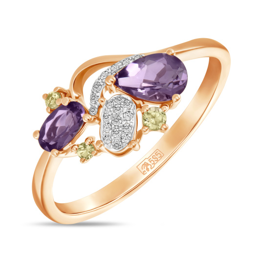 Кольцо с аметистом, топазом, хризолитом и фианитом