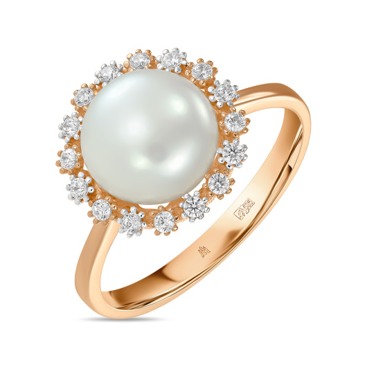 Кольцо с фианитом и жемчугом