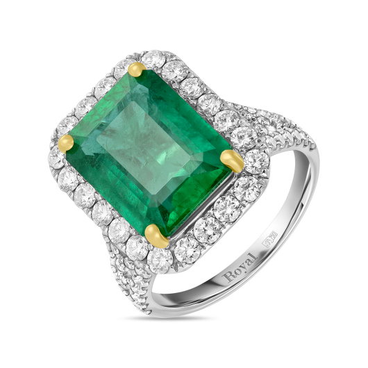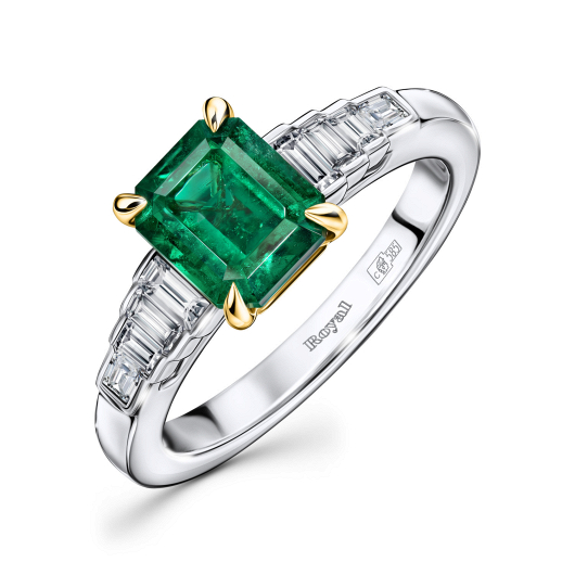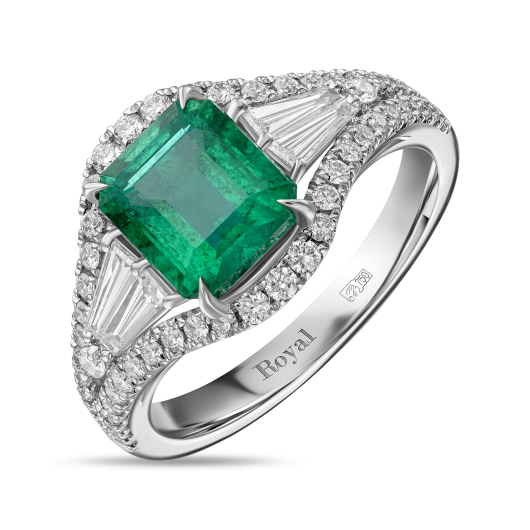 Безупречная огранка «Октагон» в полной мере раскрывает природную красоту изумруда весом 1,45 карат. Глубокий насыщенный оттенок зеленого манит в мир головокружительной роскоши и ослепительного блеска. В блистательной компании багетных и круглых бриллиантов общим весом 0,82 карат драгоценный камень смотрится особенно изысканно и утонченно. Оригинальный дизайн этого кольца из коллекции Royal, сочетающий разнообразные огранки, влюбляет в себя с первого взгляда.
