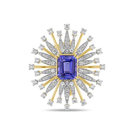 Это кольцо достойно особого места в вашей коллекции! Редчайший по своей красоте ювелирный камень танзанит огранки «Кушон» весом 8,26 карата завораживает переливами оттенков глубокого синего. Величественный и строгий, роскошный и манящий — он блистает в ослепительном сопровождении бриллиантов огранок «Багет» и «Круглая» общим весом 2,46 карата.