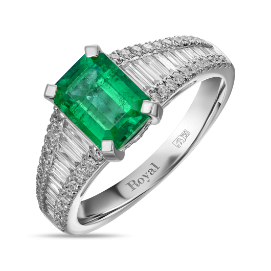 Позвольте своему взгляду утонуть в прозрачной глубине изумруда насыщенного цвета, все великолепие которого раскрывает мастерская огранка «Октагон». Красота легендарного камня особенно выразительна в союзе с его вечными соперниками-бриллиантами. Камни огранок «Багет» и «Круг», мастерски соединенные руками ювелиров в единый поток, окутывают царственный изумруд сверкающими волнами. Характеристики как центрального камня весом 1,68 карат, так и его бриллиантового окружения общим весом 1,45 карата достойны ваших инвестиций.