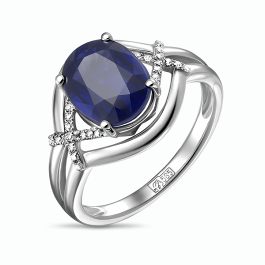 Кольцо с бриллиантами и кианитом